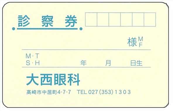 大西眼科様 診察券