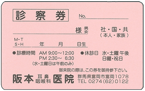 阪本医院様 診察券