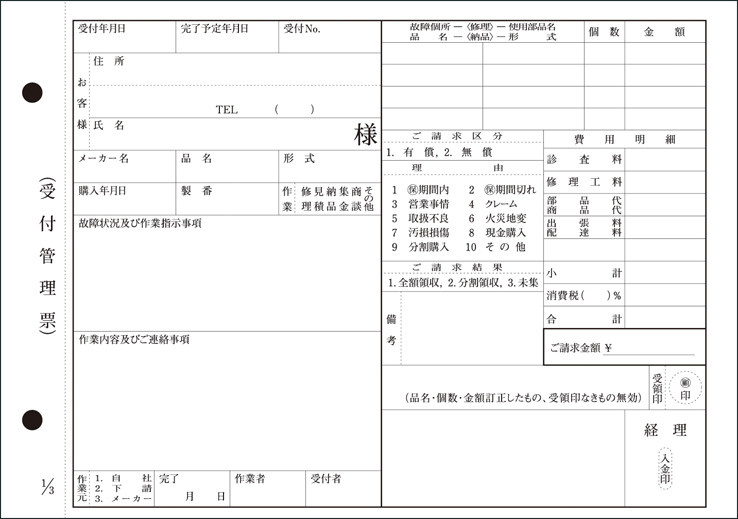 東京都電気商業組合様 修理伝票(三枚複写/ノンカーボン)