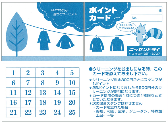 ニッセンドライ様 ポイントカード(二つ折り)